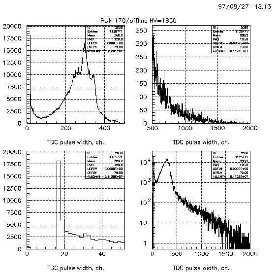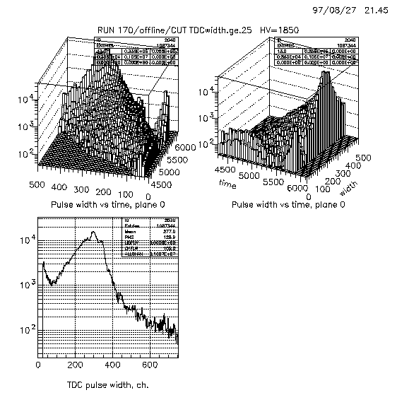 width applied: only first arrived pulses with width $\ge 25$ TDC channels
