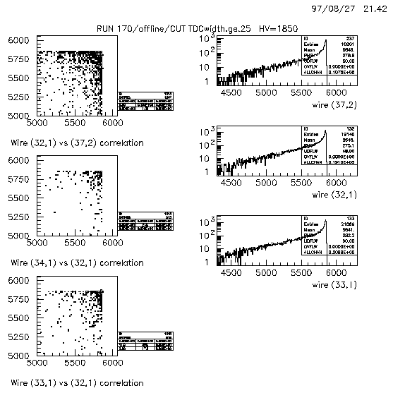 time spectra (upper-right) from selected wires in plane 2 and correlation